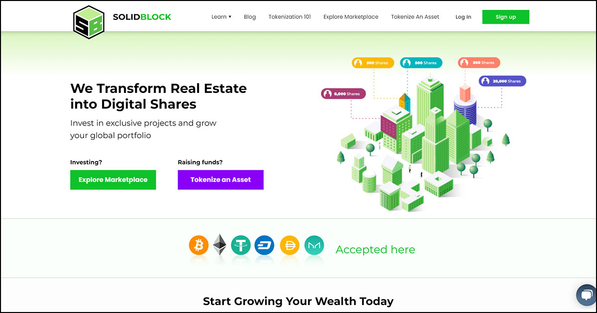 “Be an early adopter of tokenized real estate and invest on the SolidBlock digital marketplace.”